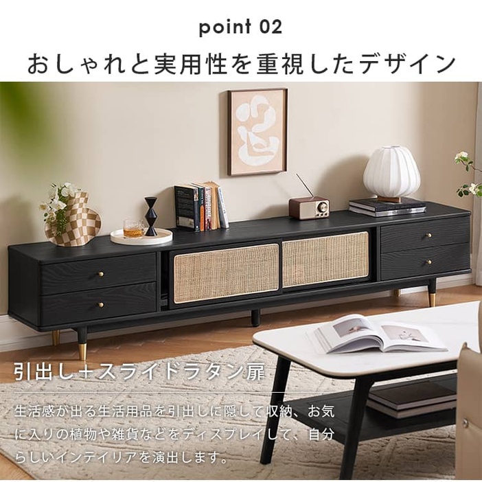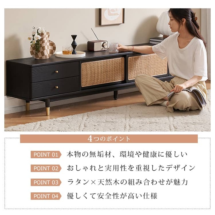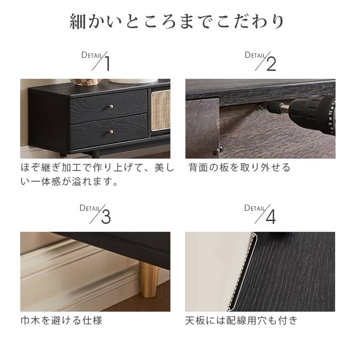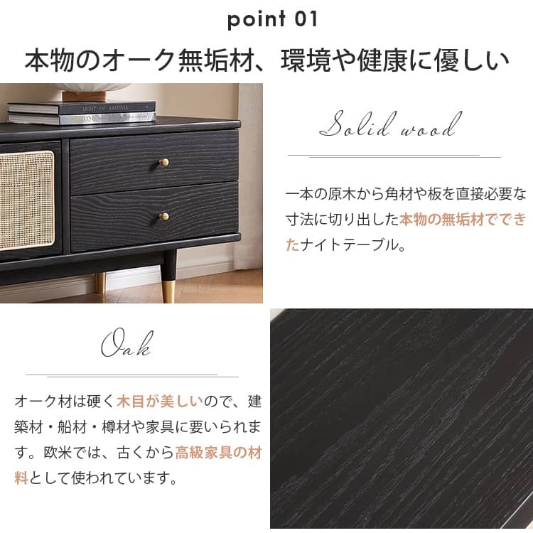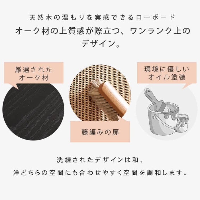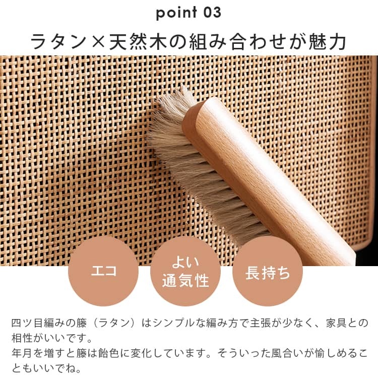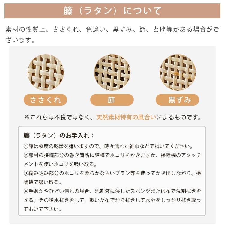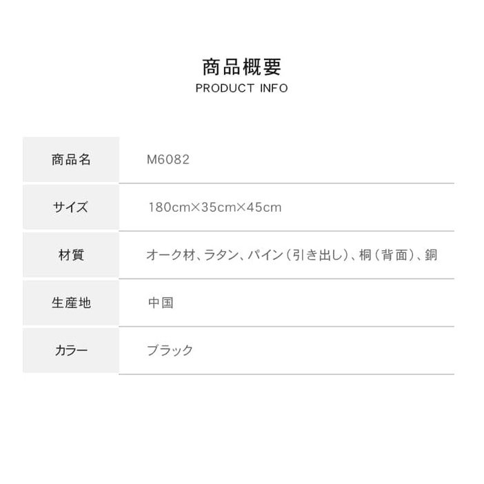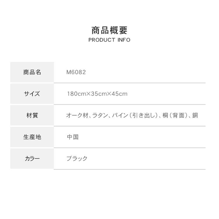 | 材質 | ■オーク材、ラタン、パイン材(引き出し)、桐(背面)、銅 |