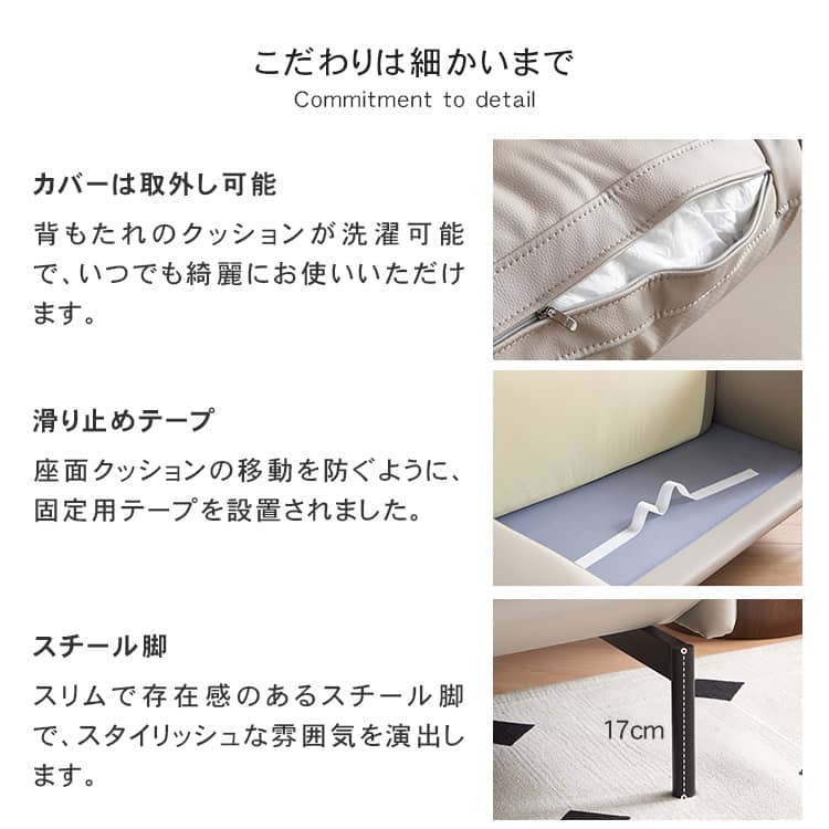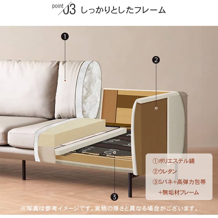 | 素材 | 本体フレーム:天然木(ラバーウッド) 張地:合皮レザー 充填物:シリコンフィル、ウレタン |