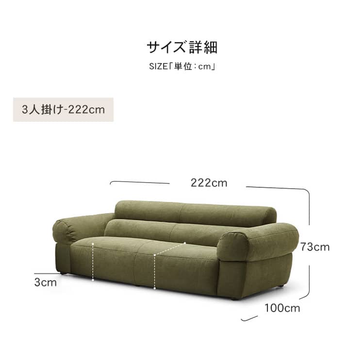 | サイズ | ■【三人掛け】約222×100×73cm |