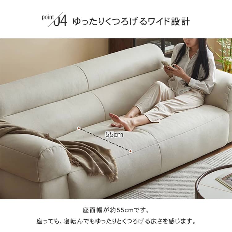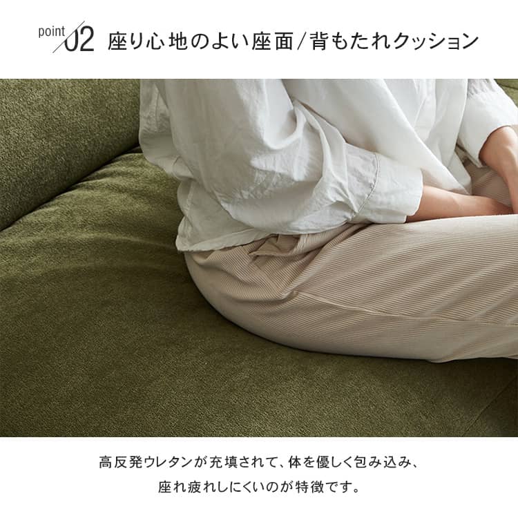 | おすすめのポイント | ■クッションカバー生地には独自の風合いがあります。柔らかいですが、傷に強いです。 ■高反発ウレタンが充填されて、体を優しく包み込み、座れ疲れしにくいのが特徴です。 ■お部屋に馴染みやすい木製のフレームが、柔らかい雰囲気をプラス。 ■座面幅が約55cmですので、座っても、寝転んでもゆったりとくつろげる広さを感じます。 |