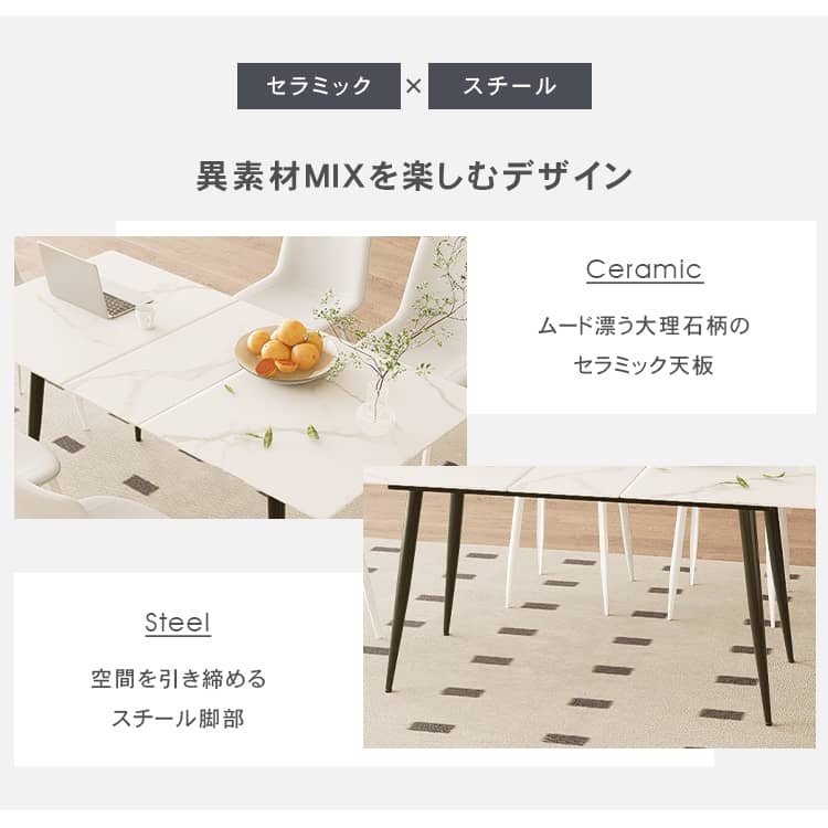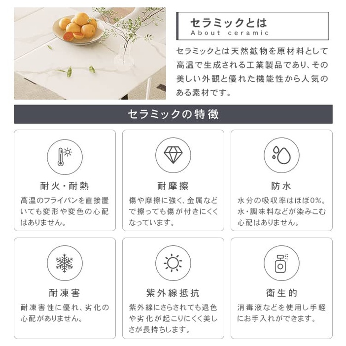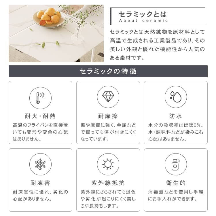 | 材質 | 天板:セラミック 脚:スチール |