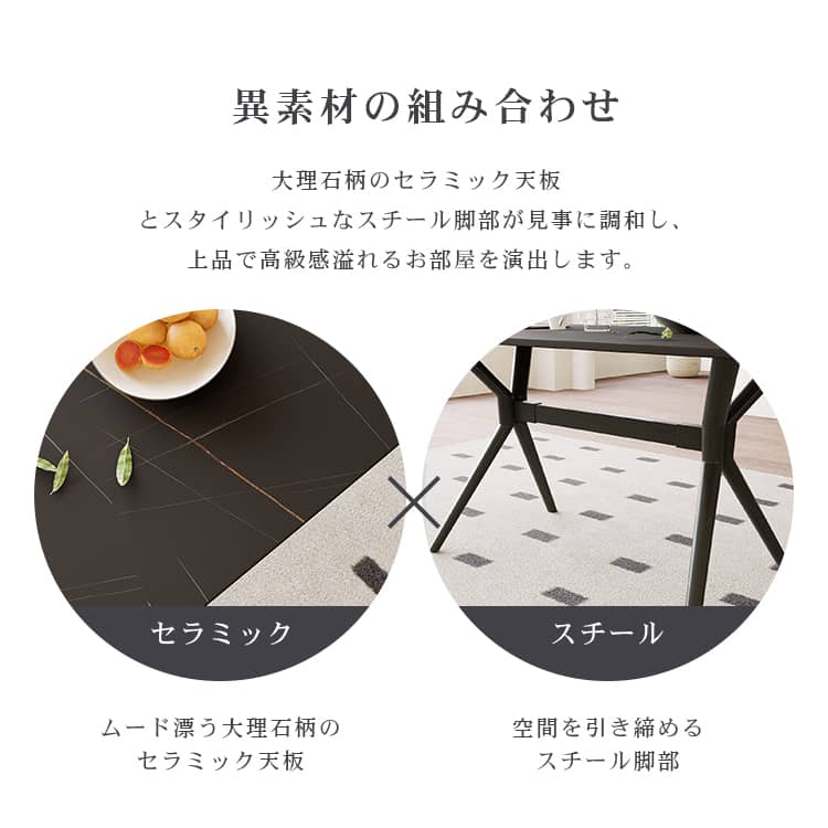 | 材質 | 天板:セラミック、突板 脚:スチール |