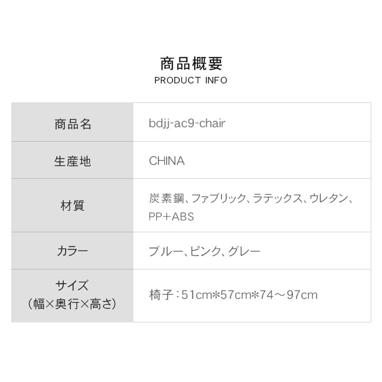 | カラー | グレー、ピンク、ブルー |