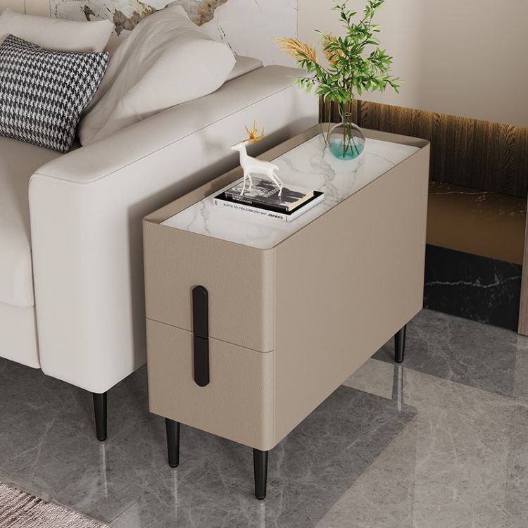 | おすすめのポイント | ■シンプルで飽きのこないフォルムが、このテーブルの特徴です。そのため、お一人おひとりのこだわりに応じた空間づくりをお楽しみいただけます。 ■表面には優しい肌触りの合皮を使用しています。合皮は高品質でありながらも手入れが簡単で、清潔感を保つのに適しています。また、その柔らかな触り心地は、くつろぎのひとときを提供します。 ■テーブルの天板にはセラミックを採用しています。セラミックは耐久性に優れ、熱や汚れに強い特性を持ちます。さらに、天板部分には「フチ」がデザインされていますので、スマホや小物を置いた際に、滑り落ちないようストッパーの役割を果たしてくれます。安心してお使いいただける設計です。 ■2杯の引き出しを備え、生活感あるものをすっきり収納できます。雑多なものを隠すことで、美しい空間を保つことができます。 ■全体のバランスを崩さず、主張しすぎないワンポイントなデザインが魅力です。どんなインテリアにも馴染み、空間に程よいアクセントを加えます。 |