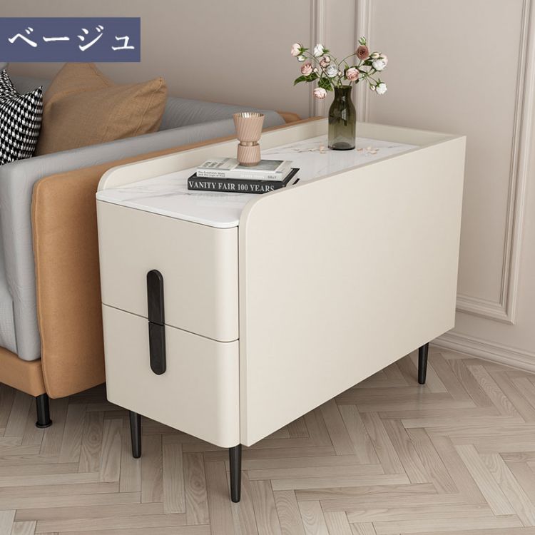 | おすすめのポイント | ■シンプルで飽きのこないフォルムが、このテーブルの特徴です。そのため、お一人おひとりのこだわりに応じた空間づくりをお楽しみいただけます。 ■表面には優しい肌触りの合皮を使用しています。合皮は高品質でありながらも手入れが簡単で、清潔感を保つのに適しています。また、その柔らかな触り心地は、くつろぎのひとときを提供します。 ■テーブルの天板にはセラミックを採用しています。セラミックは耐久性に優れ、熱や汚れに強い特性を持ちます。さらに、天板部分には「フチ」がデザインされていますので、スマホや小物を置いた際に、滑り落ちないようストッパーの役割を果たしてくれます。安心してお使いいただける設計です。 ■2杯の引き出しを備え、生活感あるものをすっきり収納できます。雑多なものを隠すことで、美しい空間を保つことができます。 ■全体のバランスを崩さず、主張しすぎないワンポイントなデザインが魅力です。どんなインテリアにも馴染み、空間に程よいアクセントを加えます。 |