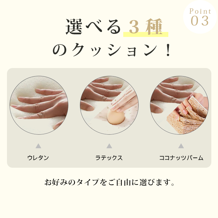 多層板、炭素鋼、ダウン、ウレタン、エアレザー、ラテックス、ココナッツパーム |