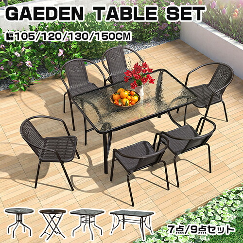 | 材質 | テーブル: 強化ガラス+スチール チェア: 人工ラタン(ポリプロピレン)+スチール | ||