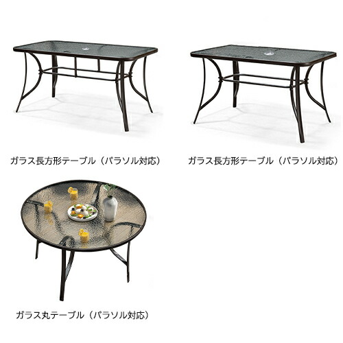 | サイズ | A1: ガラス長方形テーブル:幅120×奥行80×高さ72cm チェア(6脚):幅44×奥行36×高さ71cm A2: ガラス長方形テーブル:幅130×奥行80×高さ72cm チェア(6脚):幅44×奥行36×高さ71cm B1: ガラス長方形テーブル:幅150×奥行90×高さ72cm チェア(6脚):幅44×奥行36×高さ71cm B2: ガラス長方形テーブル:幅150×奥行90×高さ72cm チェア(8脚):幅44×奥行36×高さ71cm C1: ガラス丸テーブル:直径105×高さ72cm チェア(6脚):幅44×奥行36×高さ71cm | ||