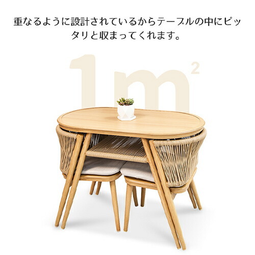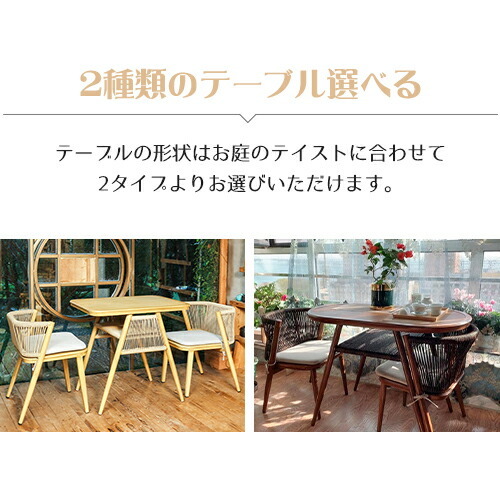 | サイズ | 長円形テーブルセット テーブル:幅104×奥行き57×高さ75cm チェア×2:幅46×奥行き40×高さ69cm 長方形テーブルセット テーブル:幅80×奥行き63×高さ76cm チェア×1:幅50×奥行き43×高さ70cm チェア×1:幅42×奥行き43×高さ70cm | ||