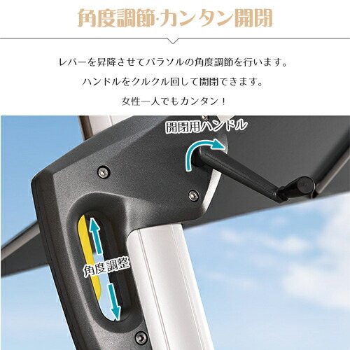 | 材質 | パラソル: 支柱:アルミニウム、スチール 傘生地:ポリエステル | ||