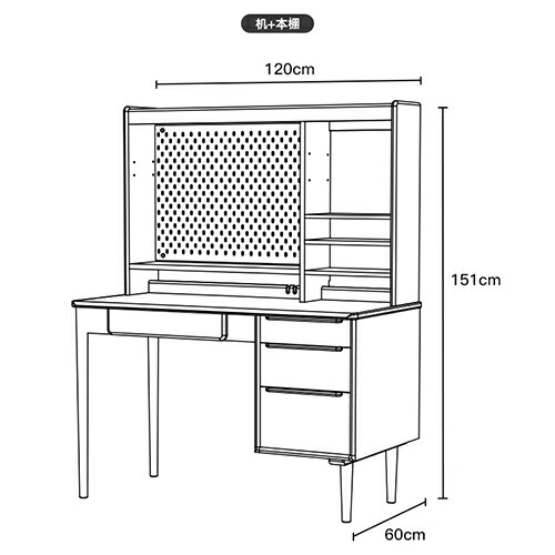 | サイズ | 机:120×60×76cm 机+本棚:120×60×151cm(+90,100円) |