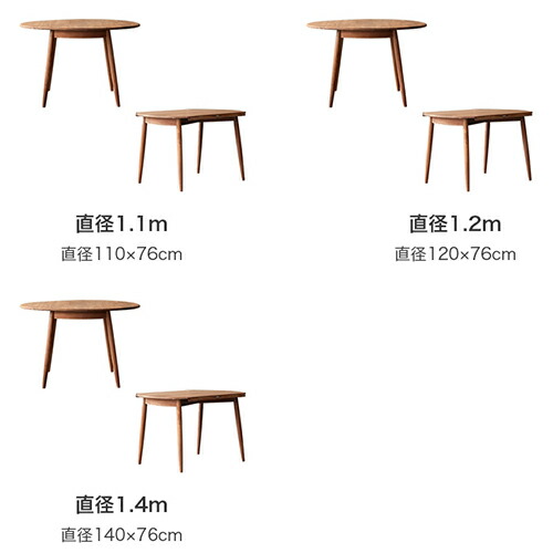 | サイズ | 直径1.1m:直径110×76cm 直径1.2m:直径120×76cm(+9,400円) 直径1.4m:直径140×76cm(+35,400円) |