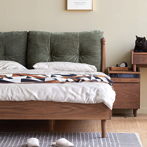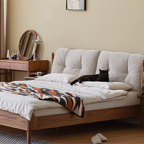 | POINT | ●背もたれクッション付 優しい体を支えて、より快適な時間を過ごします。 ●ウォールナット材 ウォールナットは硬くて密度が高く、 頑丈で重厚な雰囲気が魅力です。 ●すのこ構造 日本の住環境を考えた高通気性すのこ構造で、一年中にも快適です。 ●頑丈設計 強度アップを図った頑丈設計により、優れた耐久性を実現します。 |