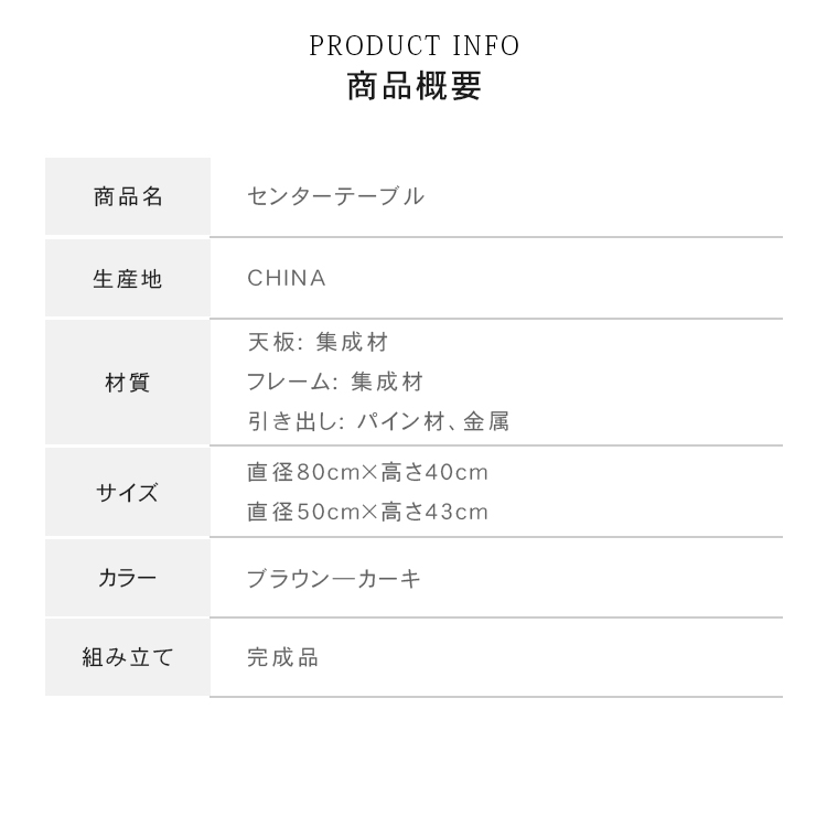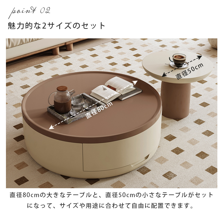 | サイズ |   直径80cm×高さ40cm 直径50cm×高さ43cm  |  ||