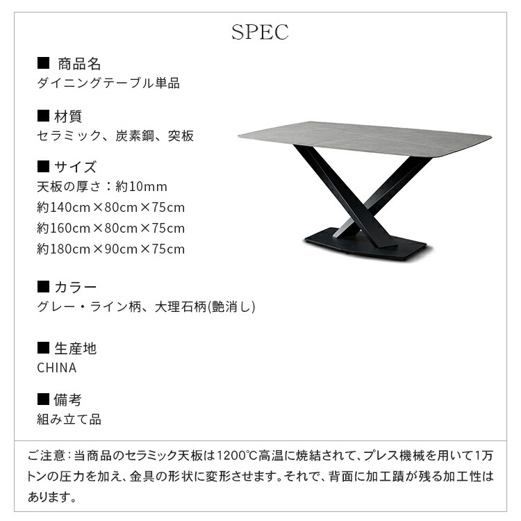 | 梱包情報 | ■幅140cm: (梱包1)天板:約144×84×4cm、重さ:約30kg (梱包2)脚部:約115×58×21cm、重さ:約29kg ■幅160cm: (梱包1)天板:約164×84×4cm、重さ:約34kg (梱包2)脚部:約115×58×21cm、重さ:約29kg ■幅180cm: (梱包1)天板:約184×94×4cm、重さ:約42.5kg (梱包2)脚部:約115×58×21cm、重さ:約29kg |