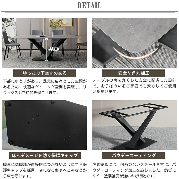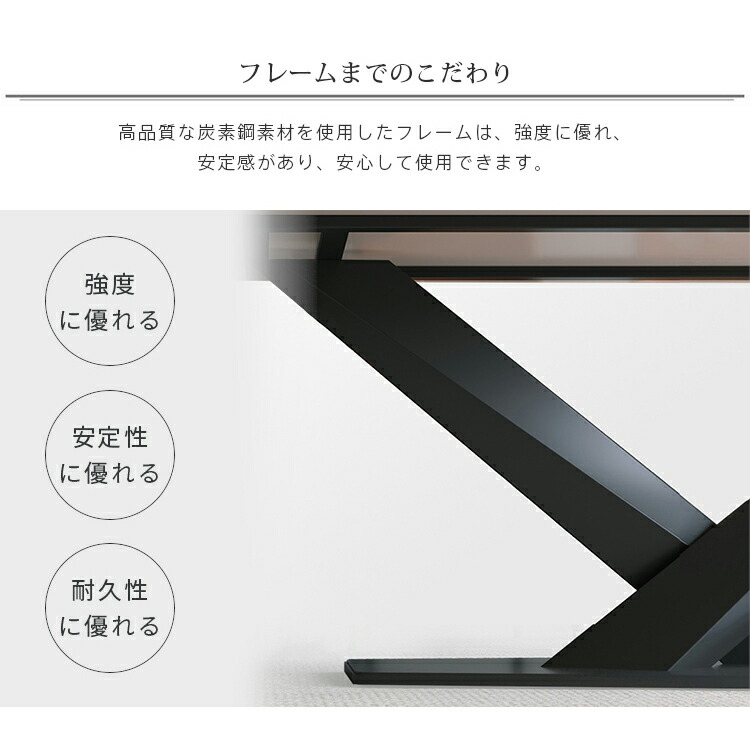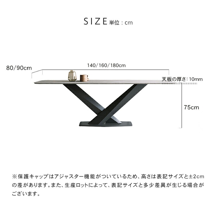 | 梱包情報 | ■幅140cm: (梱包1)天板:約144×84×3.5cm、重さ:約30kg (梱包2)脚部:約102×47×75cm、重さ:約29kg ■幅160cm: (梱包1)天板:約164×94×3.5cm、重さ:約34kg (梱包2)脚部:約102×47×75cm、重さ:約29kg ■幅180cm: (梱包1)天板:約184×94×3.5cm、重さ:約42.5kg (梱包2)脚部:約102×47×75cm、重さ:約29kg |