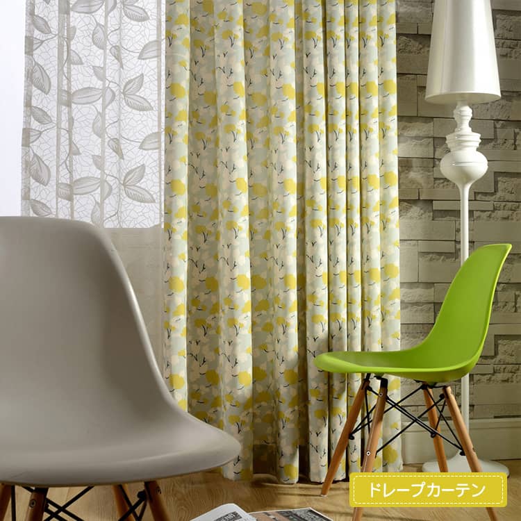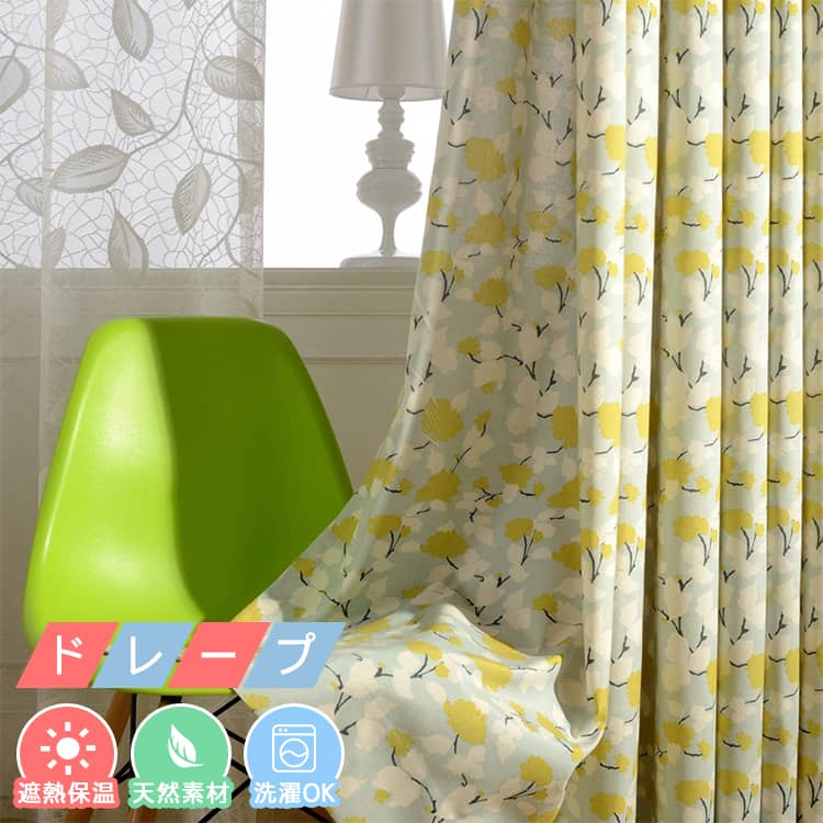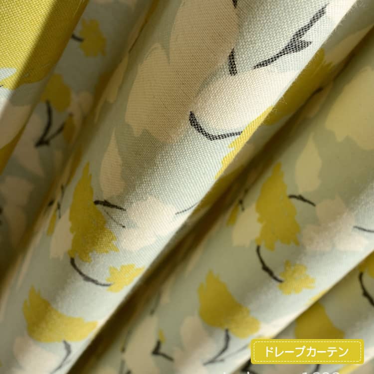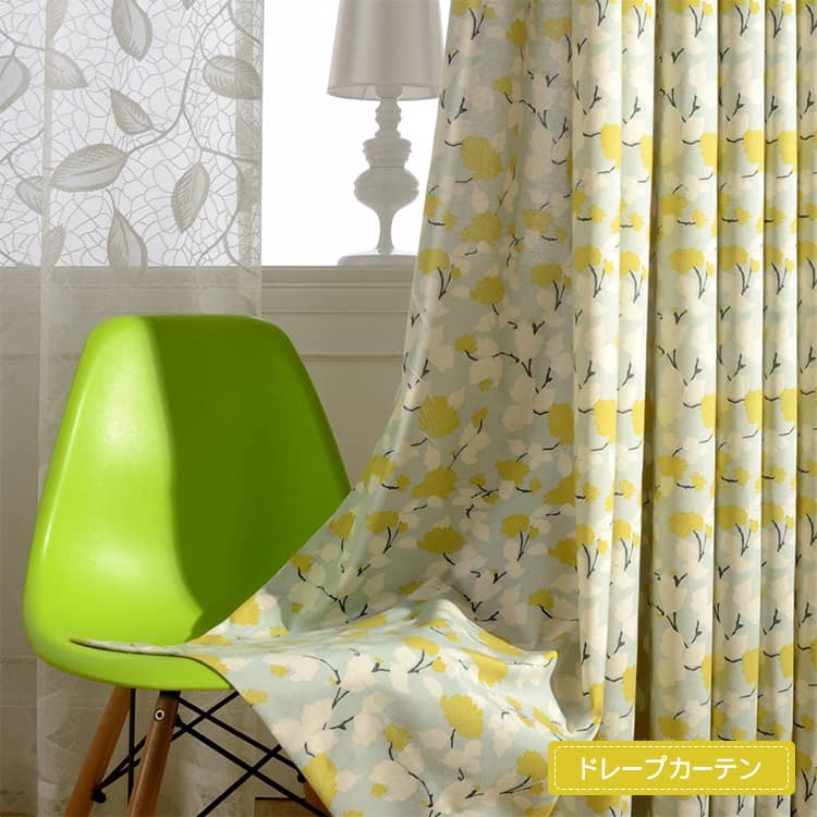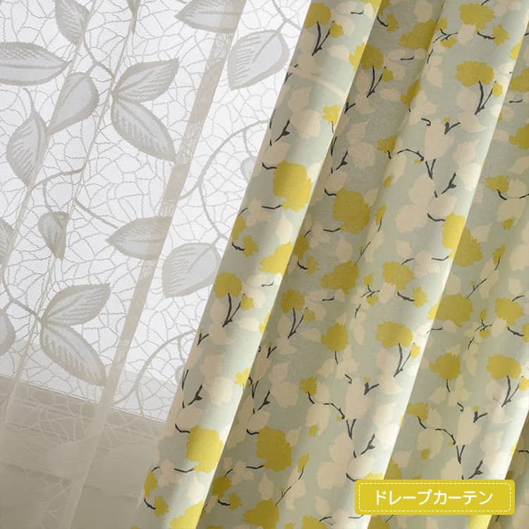 柔らかな生地感と色合いのリーフ柄が美しいカーテン。