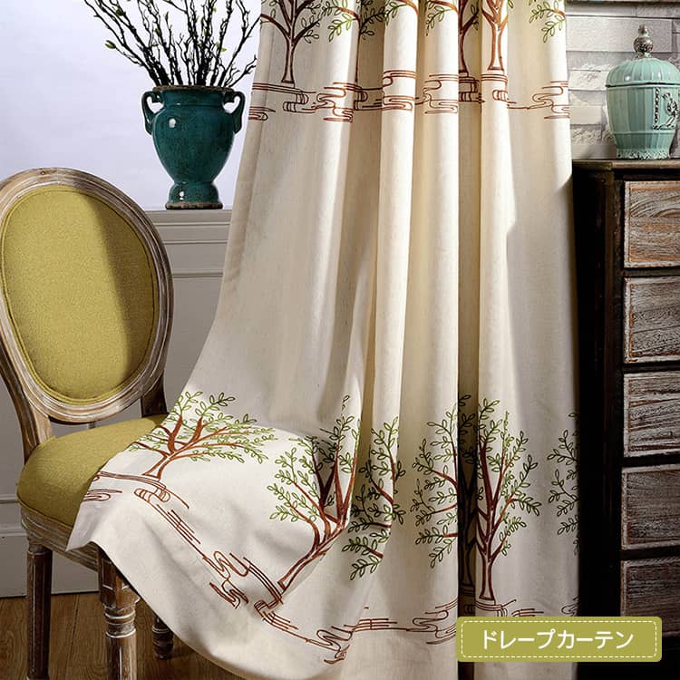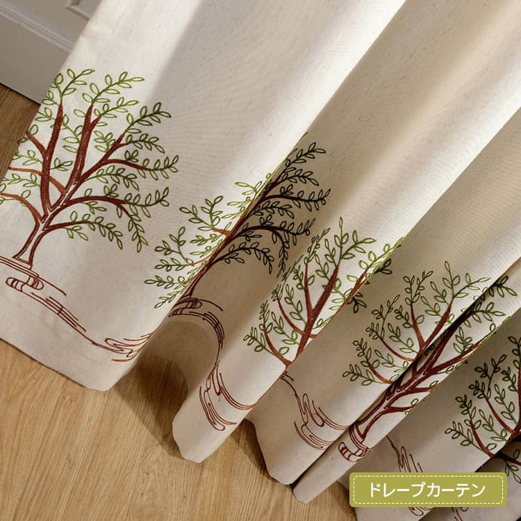 触り心地の良いナチュラルな生地に、湖の隣ある木の光景を描かれたデザイン。