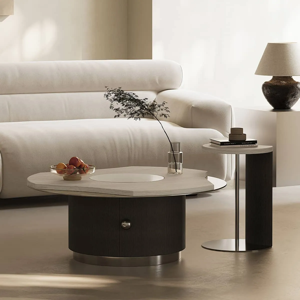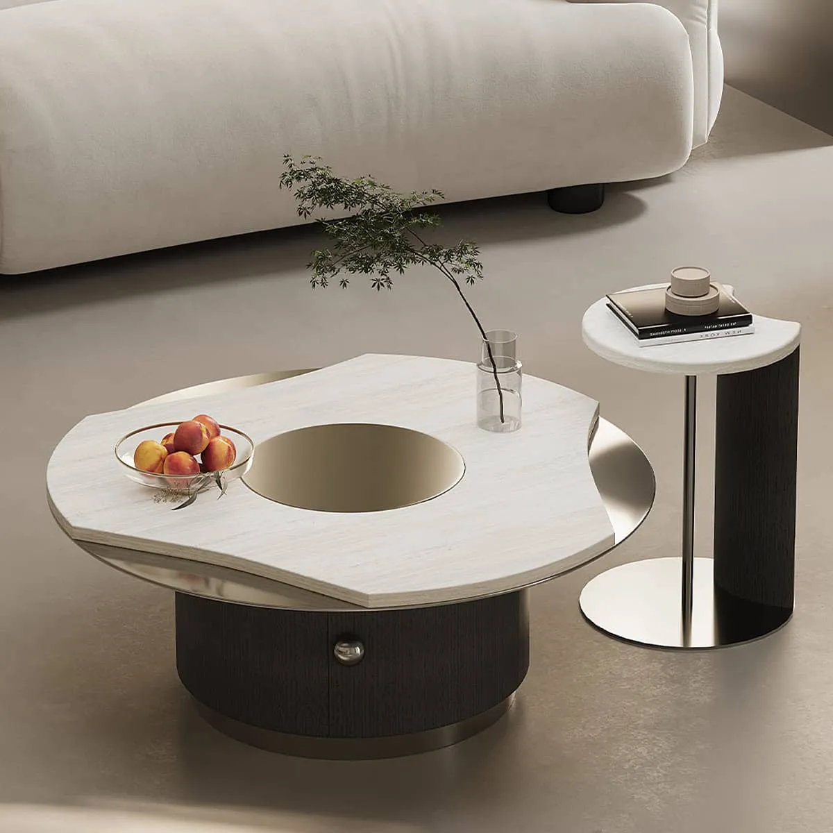 | サイズ | センターテーブル(直径80cm), サイドテーブル(直径30cm), テーブルセット(直径80cm+直径30cm) | ||