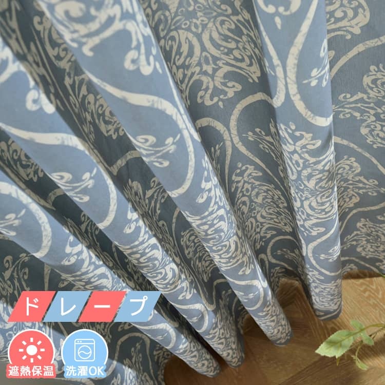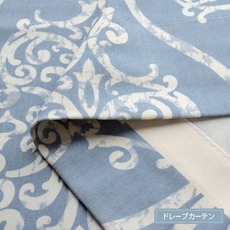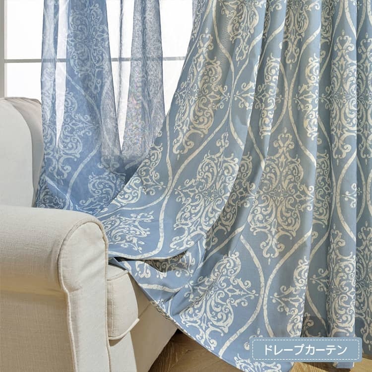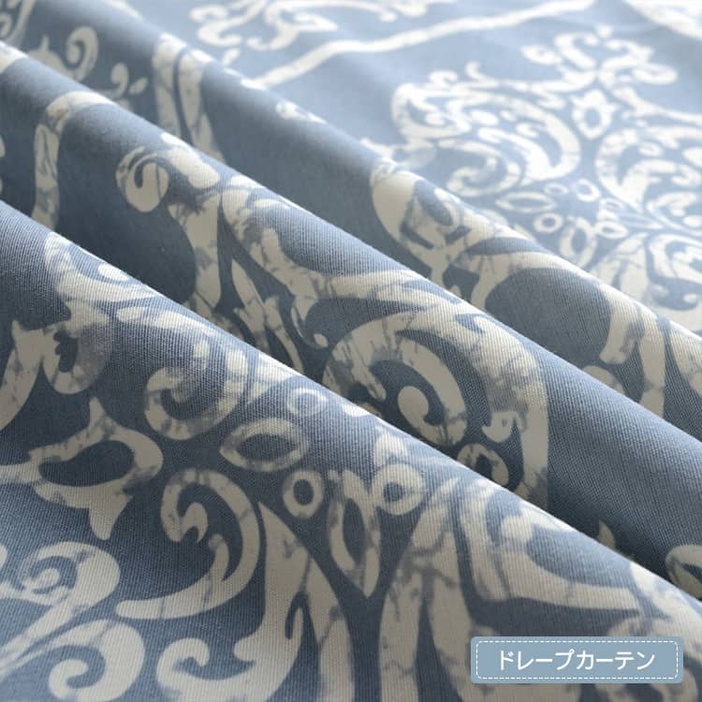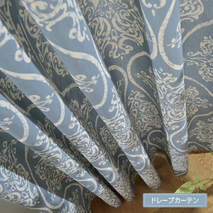 落ち着いた色味のビジョンブルーを基調に、上品なアイボリーダマスク柄がおしゃれな空間を演出し、