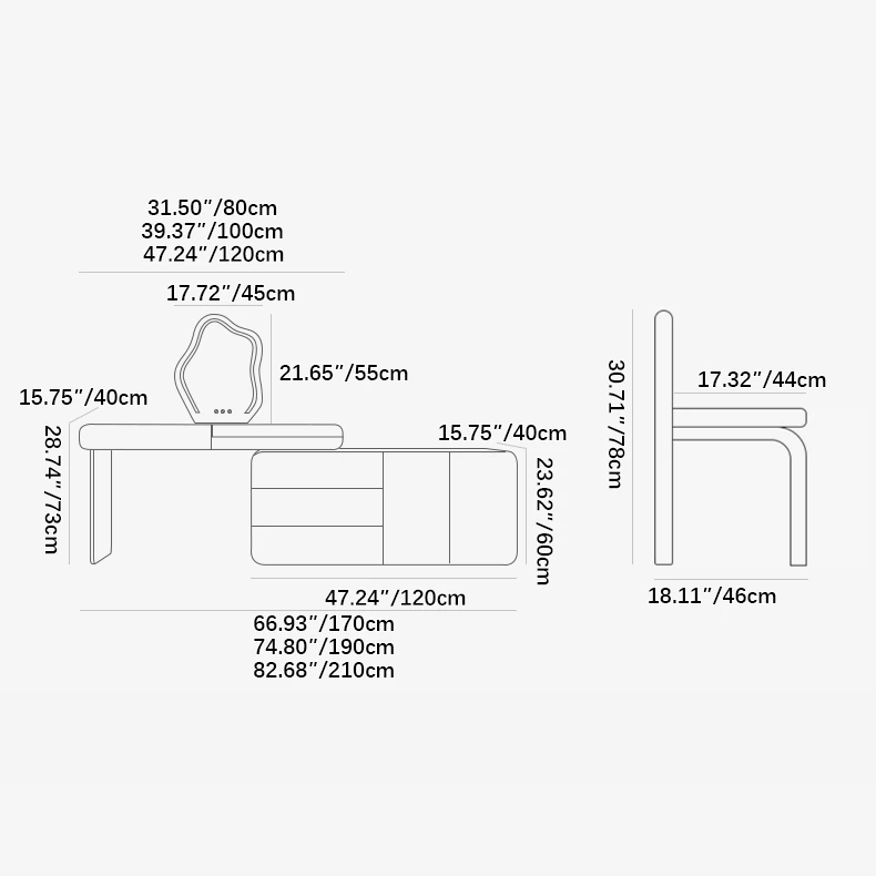幅80cm, 幅100cm, 幅120cm |