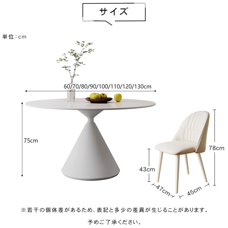| サイズ | テーブル:60cm×60cm×75cm~130cm×130cm×75cm(7サイズ) 椅子:47cm×45cm×78cm | ||