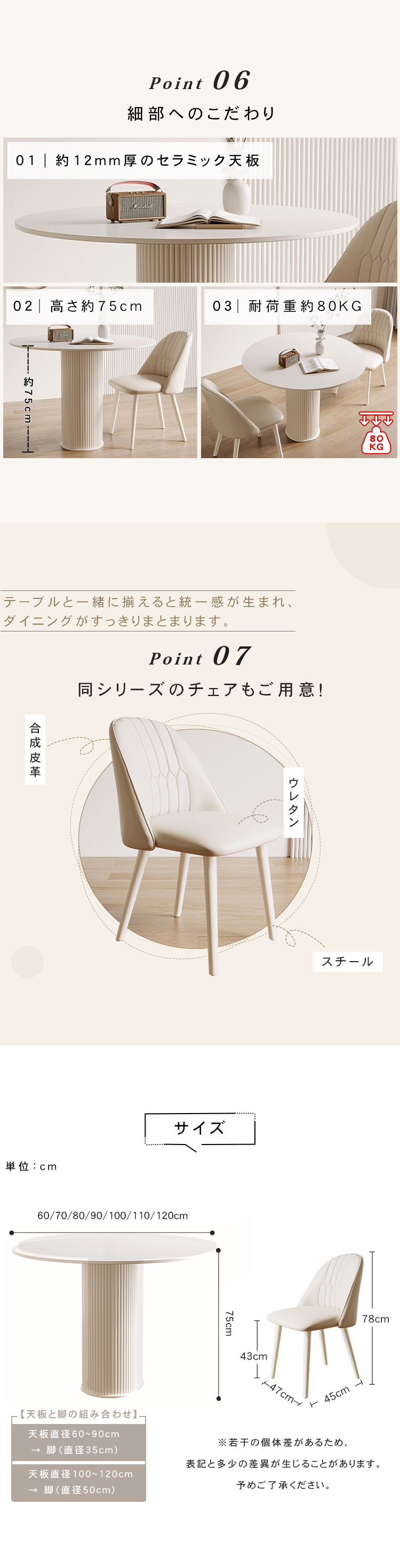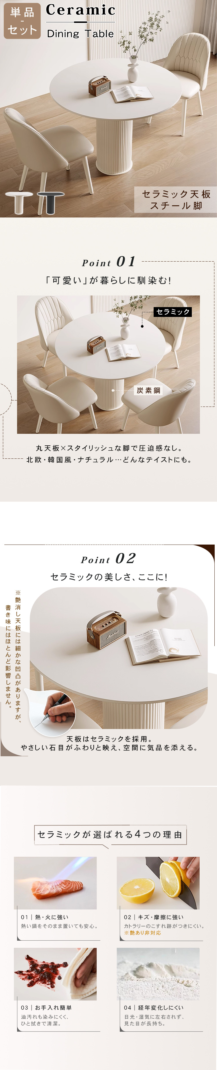 テーブル:セラミック、炭素鋼 椅子:合成皮革、ウレタン、炭素鋼 |