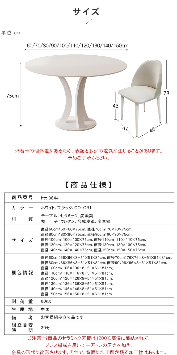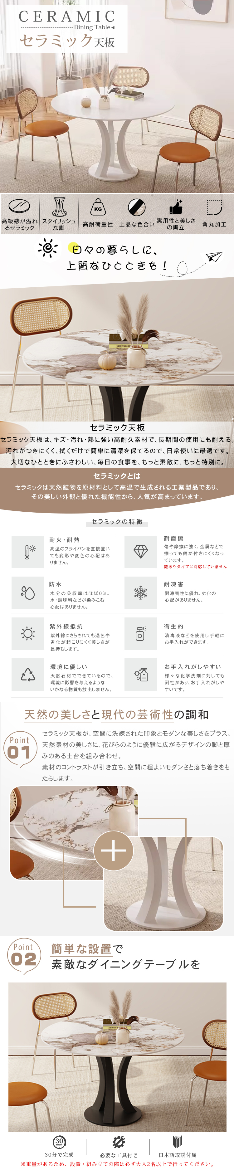 テーブル:セラミック、金属 椅子:合成皮革、ウレタン、炭素鋼 |