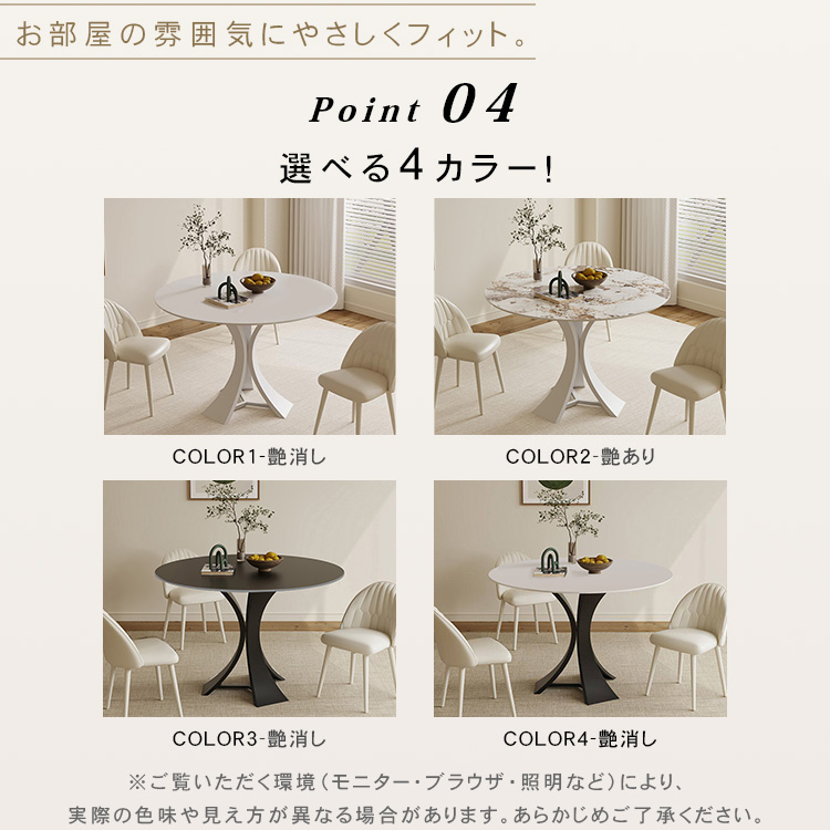 円形デザインにより動線がスムーズで、視線が自然に集まり、会話の弾むダイニング空間を演出。