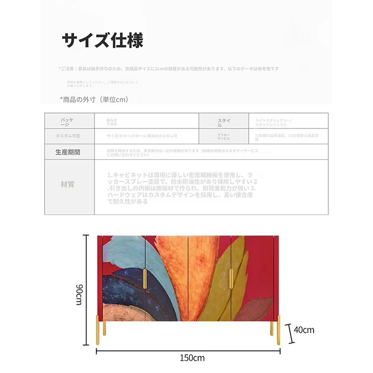 | サイズ | 幅150cm(4枚扉), 幅120cm(3枚扉) | ||