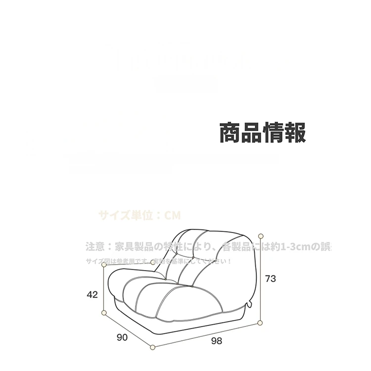 | 梱包 | 90cm: 梱包1: 幅 100.0cm×奥行き 100.0cm×高さ 73.0cm 38.0kg | ||