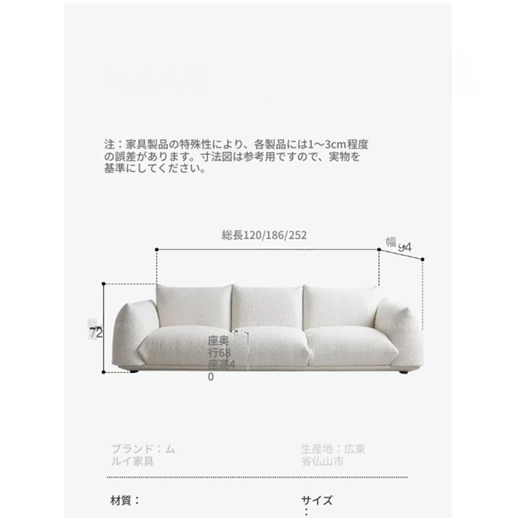 | サイズ | 1人掛け(120×94×72cm), 2人掛け(186×94×72cm), 3人掛け(220×94×72cm) | ||