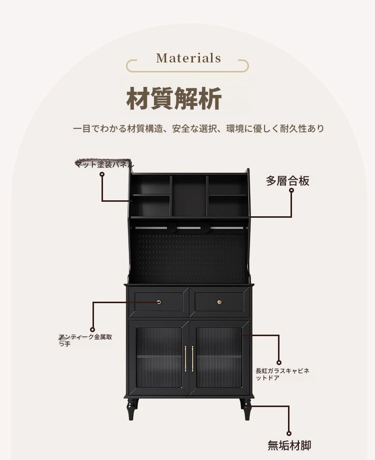 | 材質 | 多層板、金属、ガラス、ラバーウッド | ||