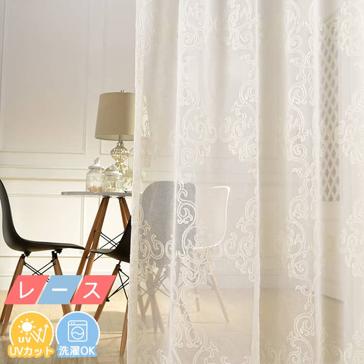 透け感が美しい生地と甘い刺繍が上品で美しいな窓辺を演出してくれます。