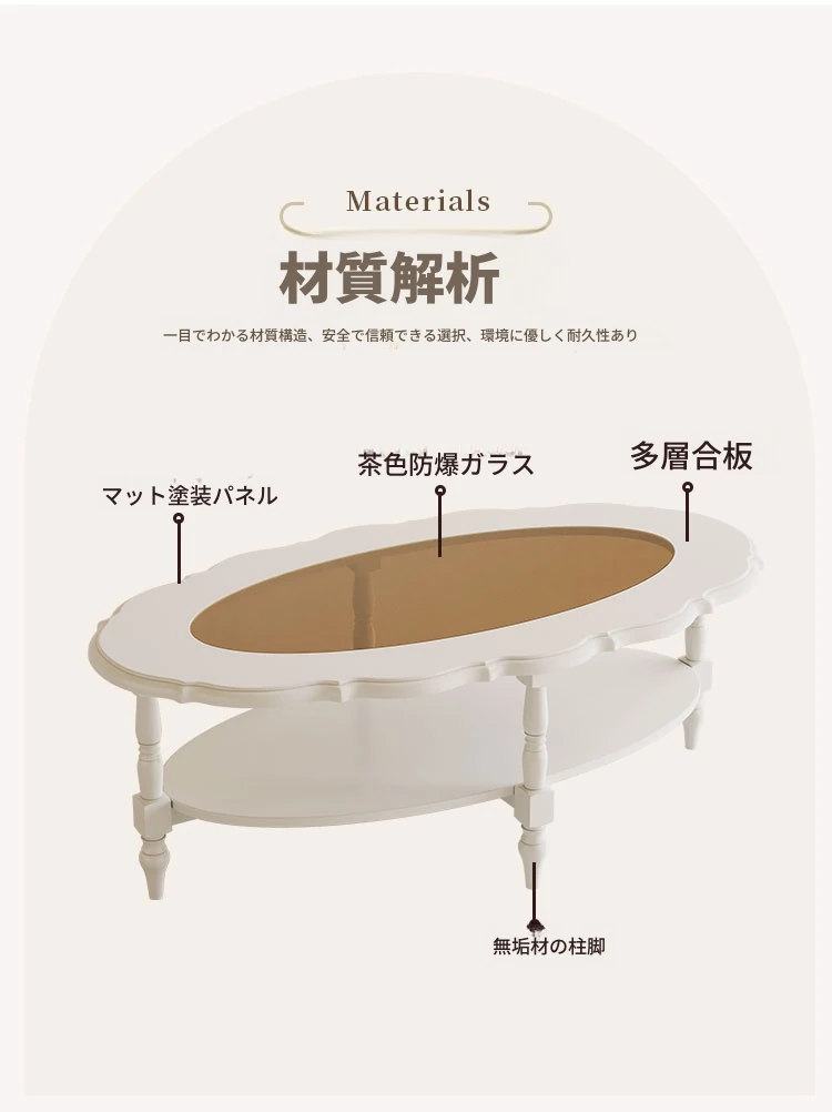 | 材質 | 多層板、ラバーウッド、ガラス | ||