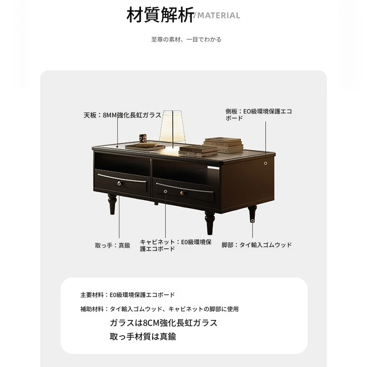 | 材質 | 集成材、金属、強化ガラス、銅、ラバーウッド | ||