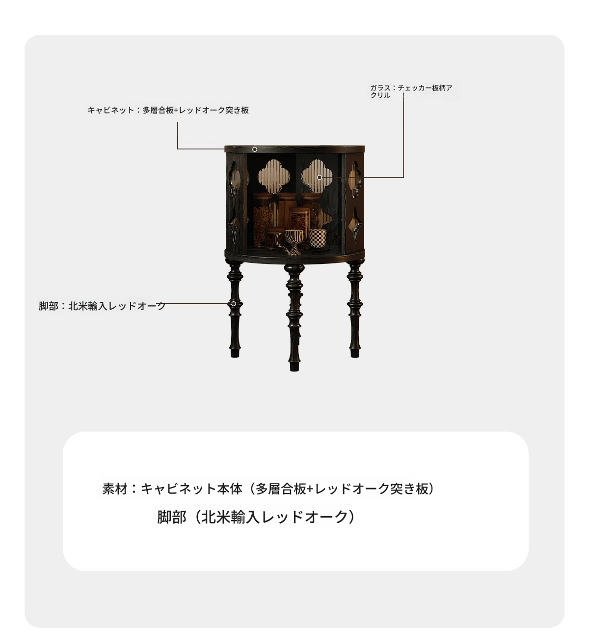 | 材質 | 多層板、ガラス、レッドオーク | ||