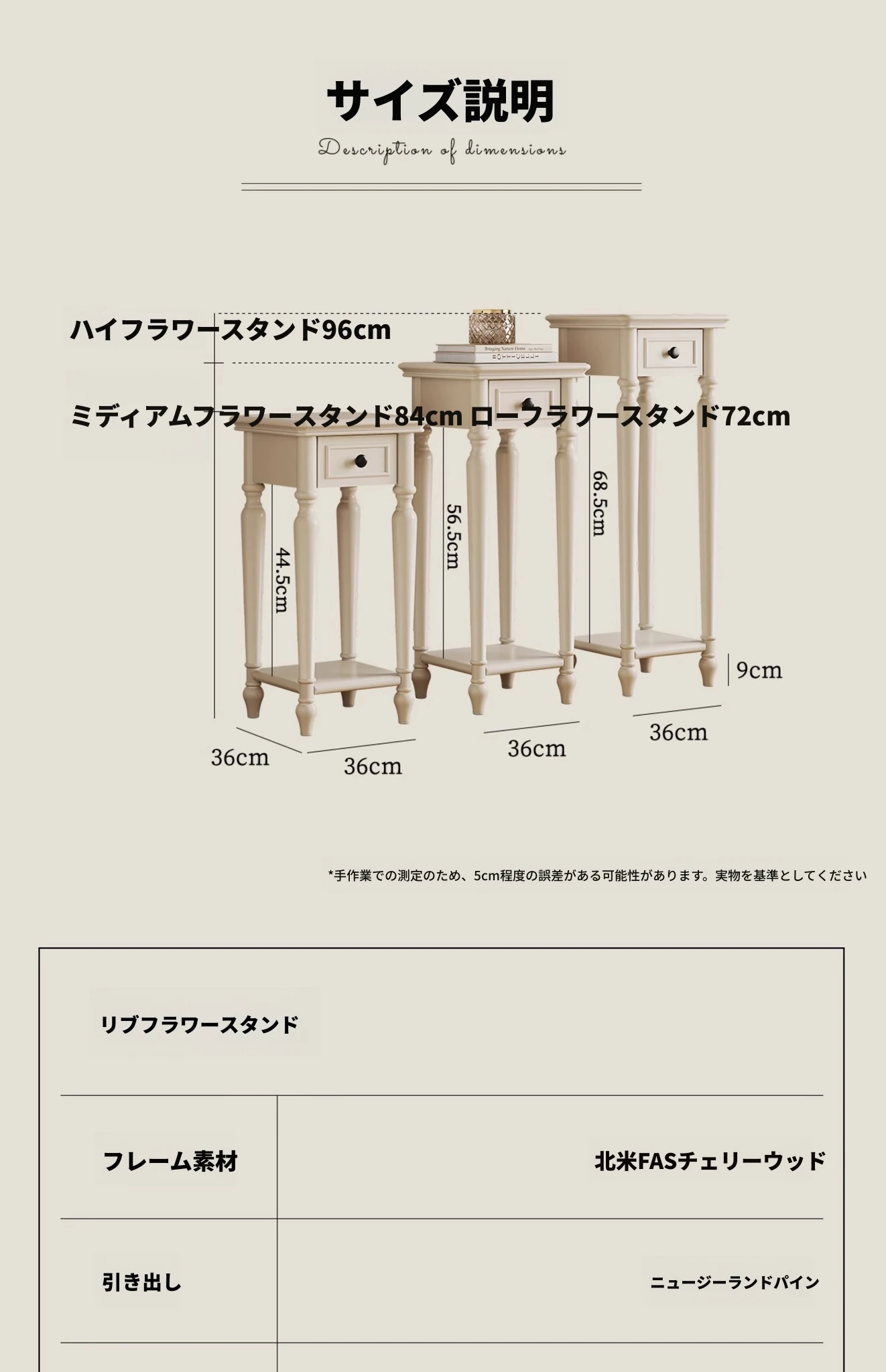 | サイズ | 高さ72cm, 高さ84cm, 高さ96cm | ||