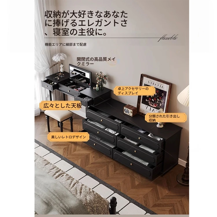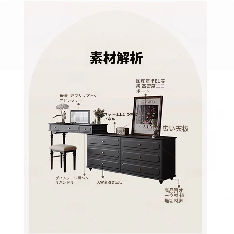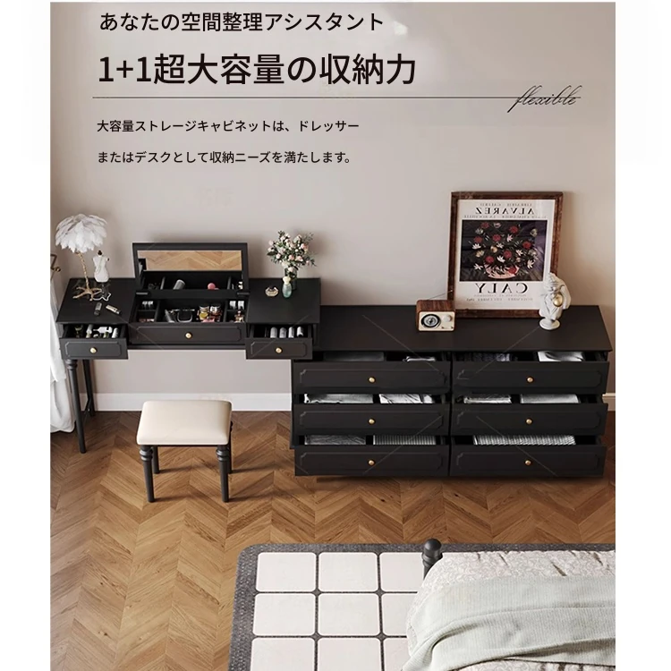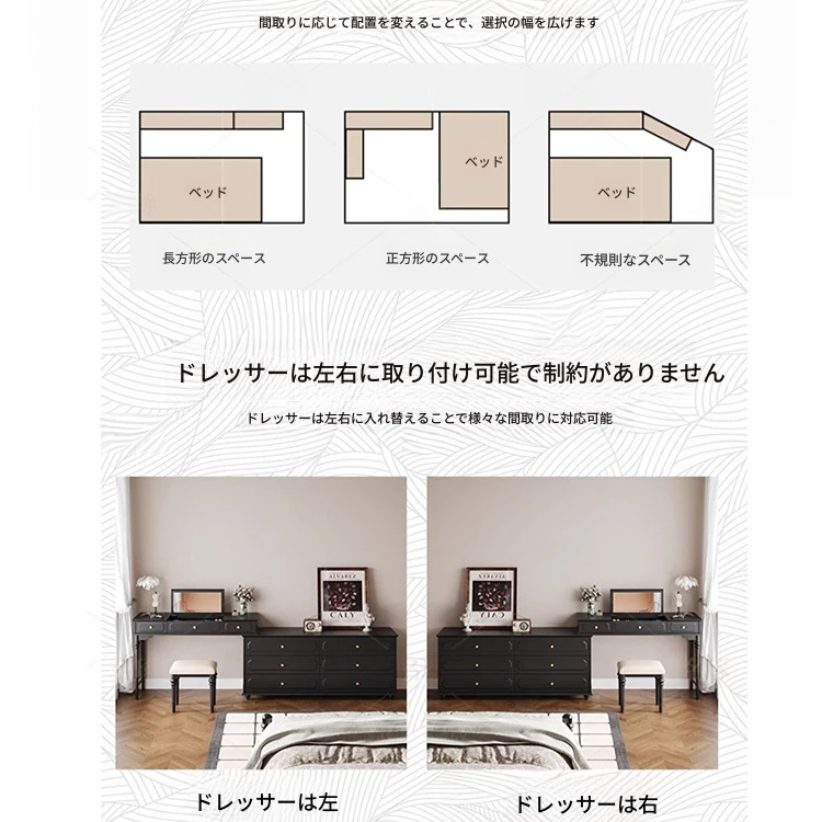 | サイズ | 120cm ドレッサー+120cm 6段チェスト, 120cm ドレッサー+150cm 6段チェスト | ||