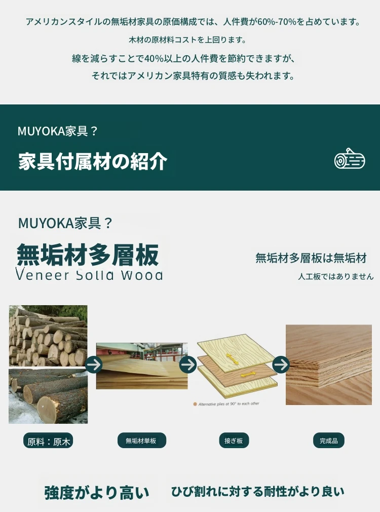 | 材質 | 無垢材、パイン、多層板、金属、ポリエステル | ||