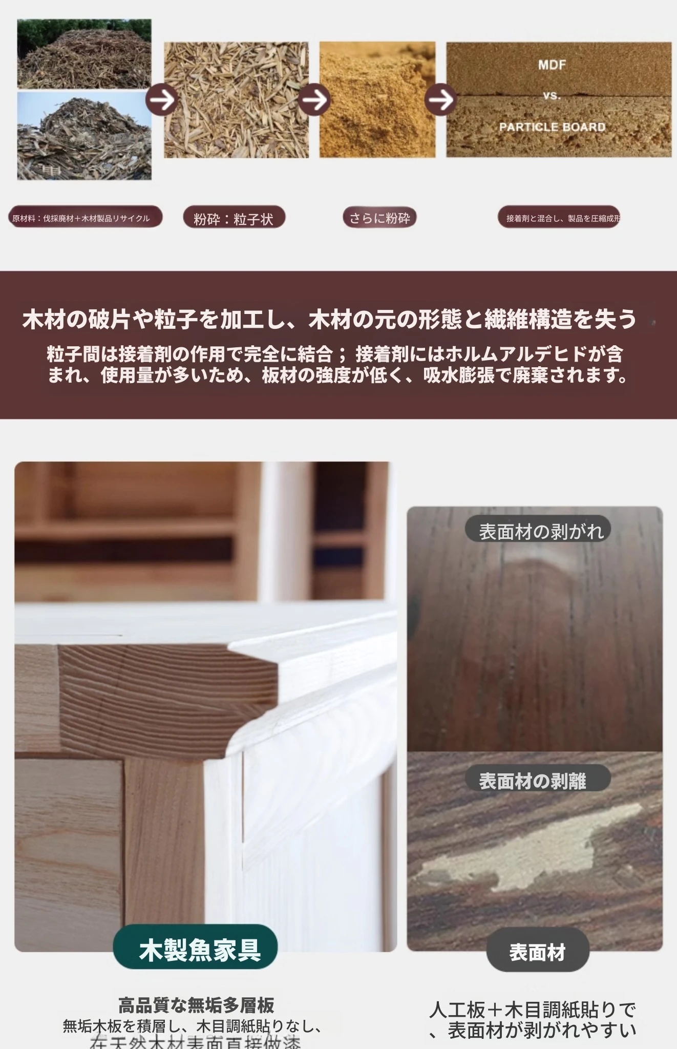 | 材質 | 無垢材、ラバーウッド、パイン、多層板 | ||