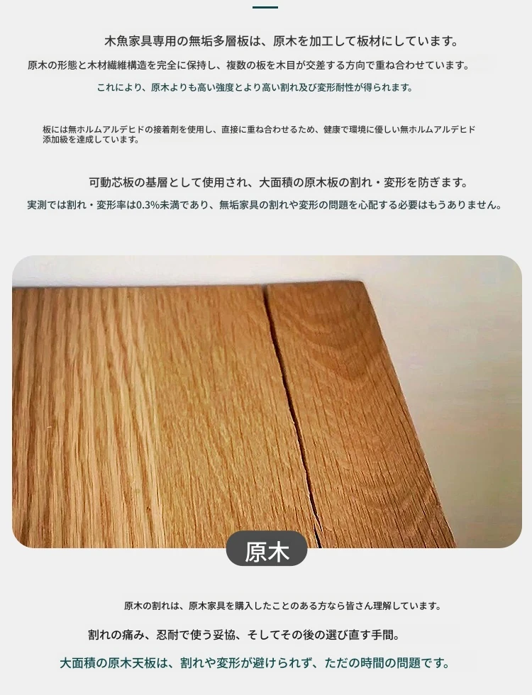| 材質 | 無垢材、ラバーウッド、多層板 | ||