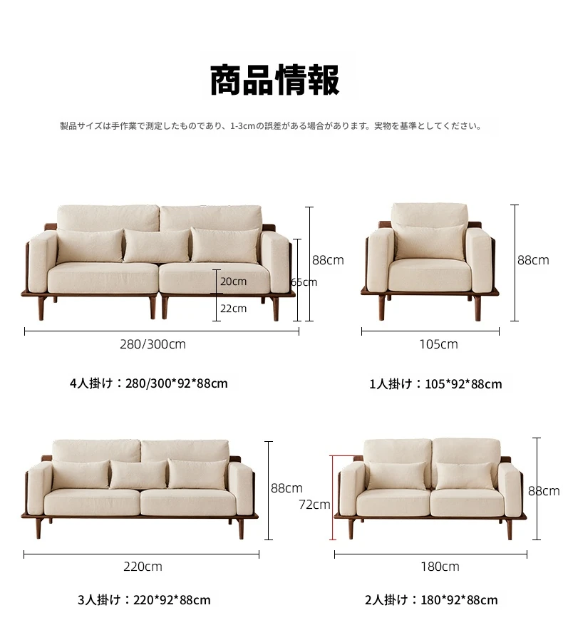 | 材質 | ウォールナット、発泡ポリエチレン、ダウン、ウレタン、綿麻 | ||