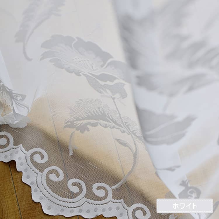 透け感が美しいレースに織り込んだ花やリーフ柄、優しく上品な味わいを持つ1枚です。
