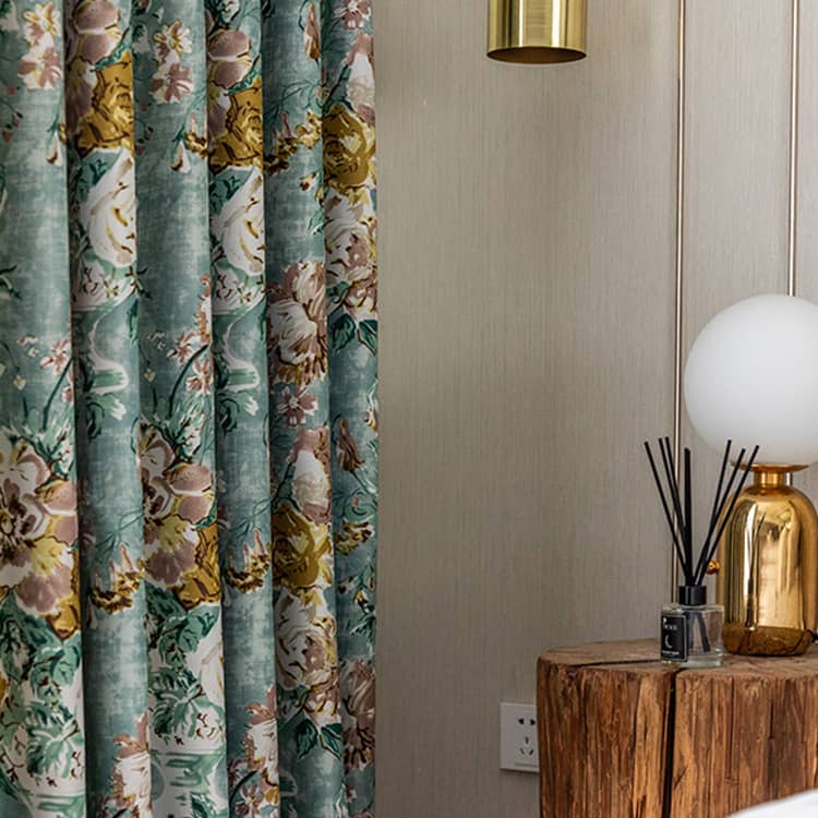クラシカルな雰囲気が漂う、絵柄が上品なドレープカーテン。