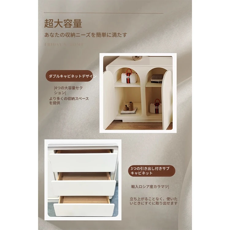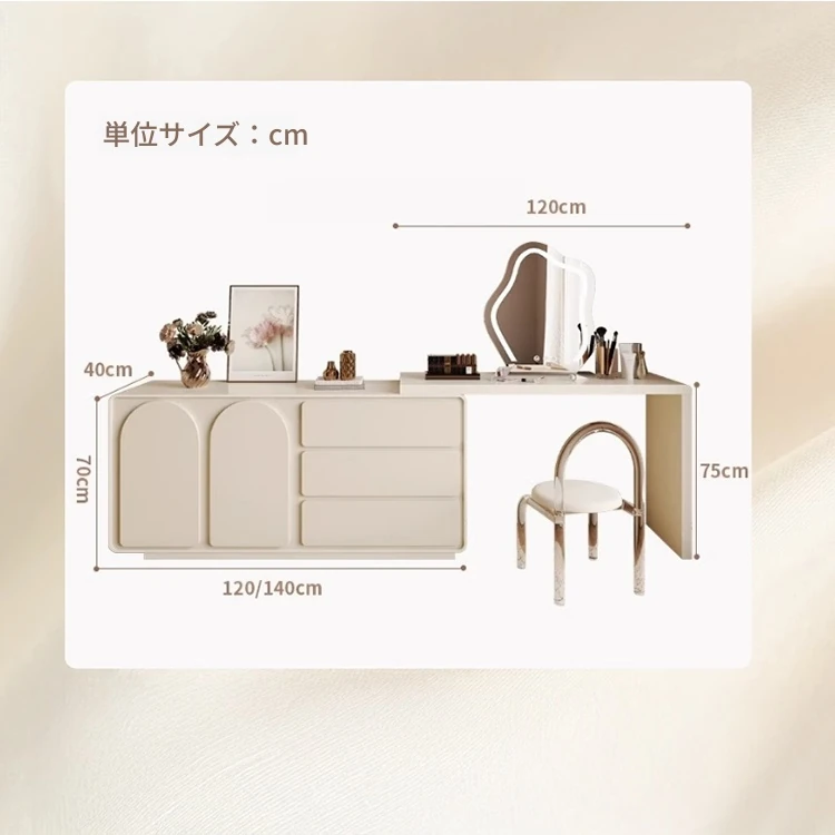 | サイズ | 幅120cmキャビネット+ドレッサーセット, 幅140cmキャビネット+ドレッサーセット | ||