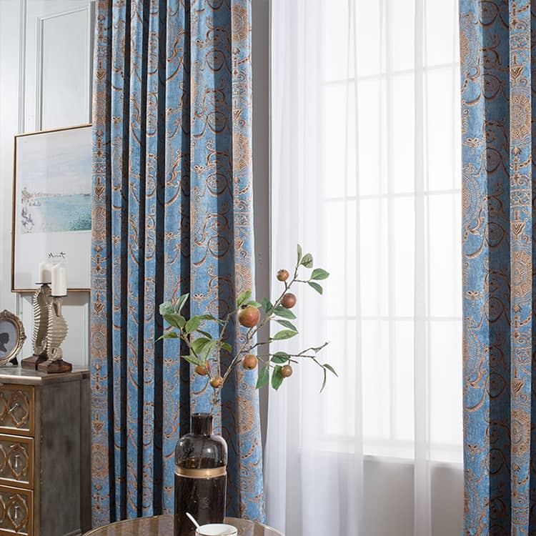 穏やかな雰囲気が溢れる鼎や陶瓷器モチーフのジャカードカーテン。