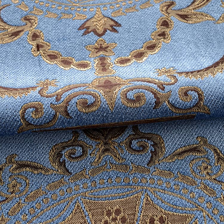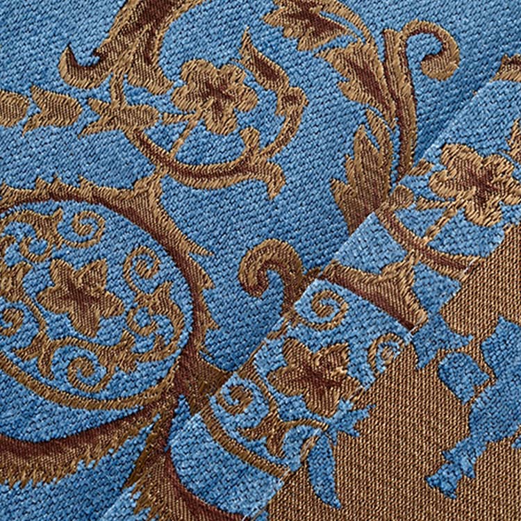 ベースカラーは落ち着いたブルーで、柄の部分は銅の色。古典的な1枚です。