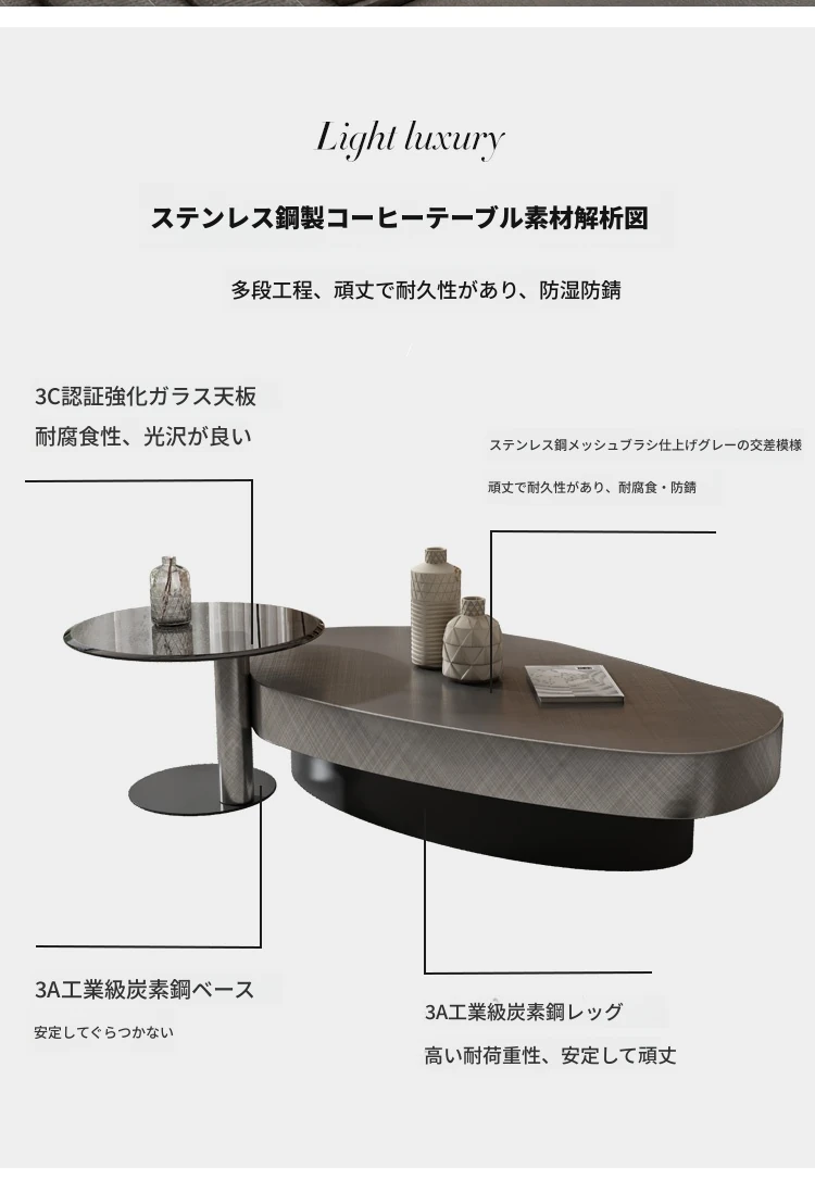 | 材質 | 強化ガラス、炭素鋼、ステンレス、無垢材、金属 | ||