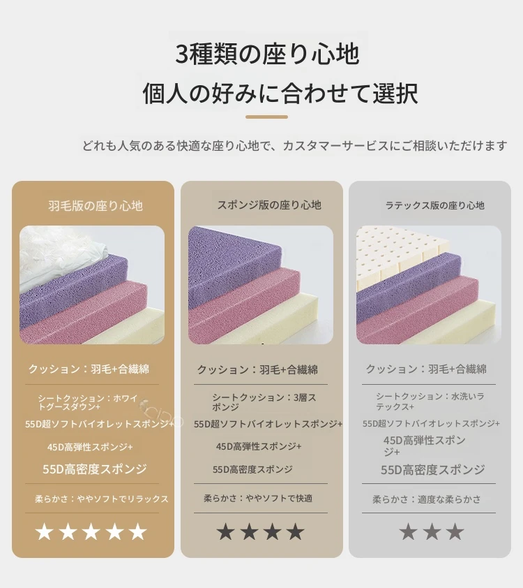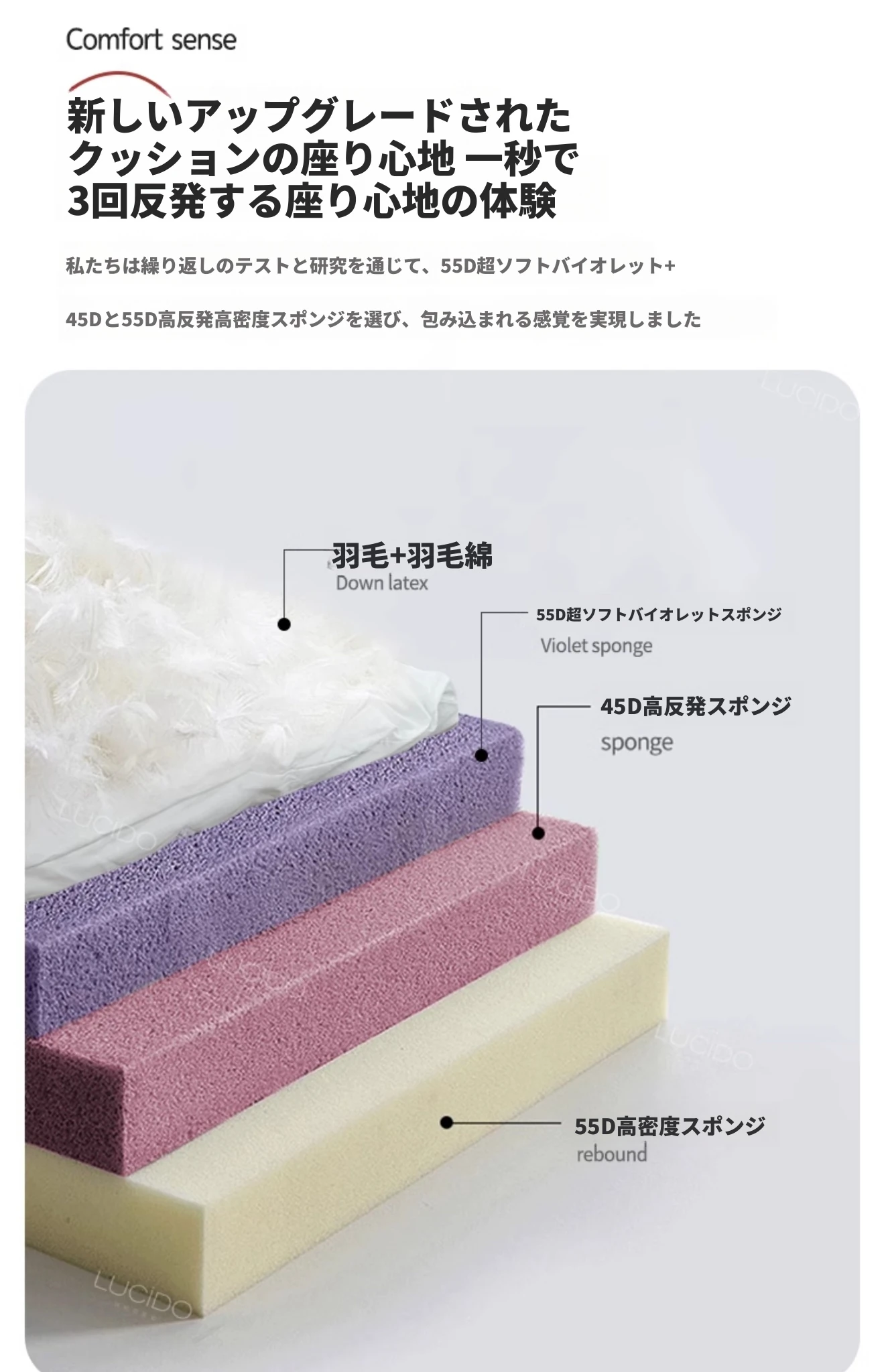 | 材質 | 本革、パイン、ウレタン、ダウン、合成皮革 | ||